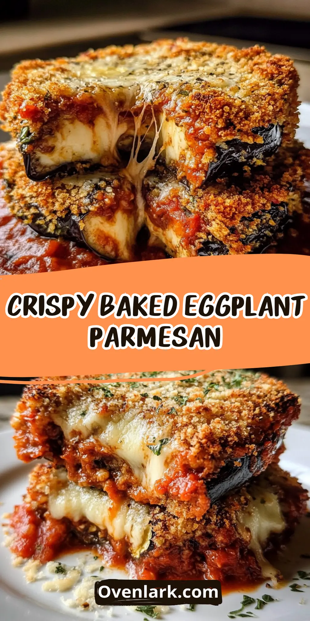 • This Crispy Baked Eggplant Parmesan is sure to become a favorite in your household.