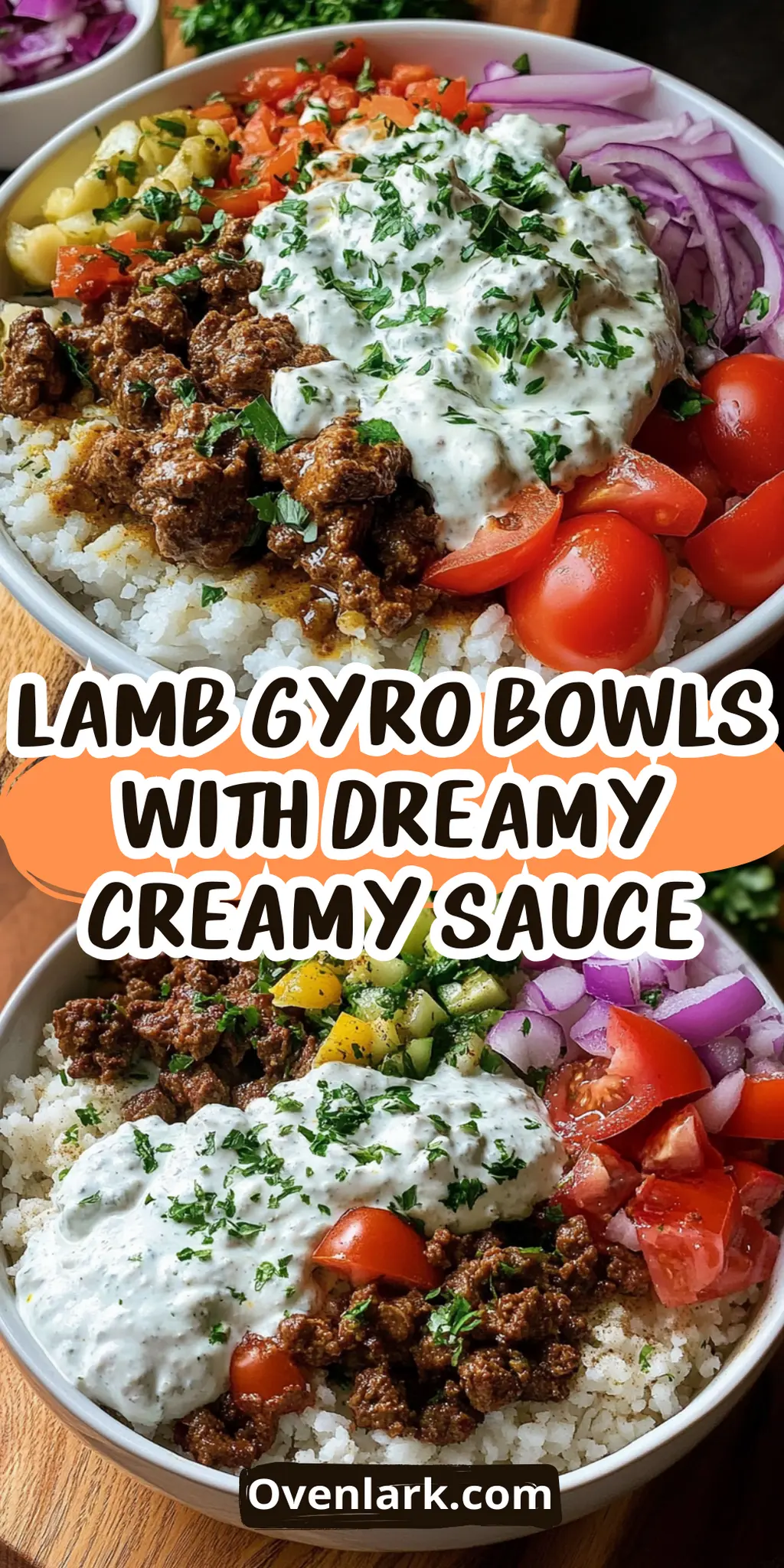 Savor the flavors of Lamb Gyro Bowls with Dreamy Creamy Sauce, a delightful, easy meal bursting with Mediterranean goodness.
